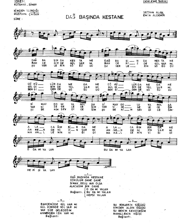 Bu türkünün notasında, sözlerinde veya örnek icrasında bir eksiklik yahut yanlışlık tespit ederseniz, e-mail ile veya WhatsApp hattından bildirim yaparak katkıda bulunabilirsiniz.