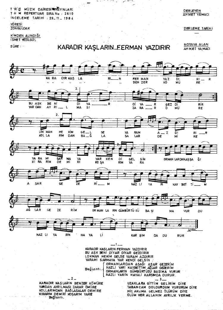 Karadır kaşların ferman yazdırır (Rep.No: 2610)