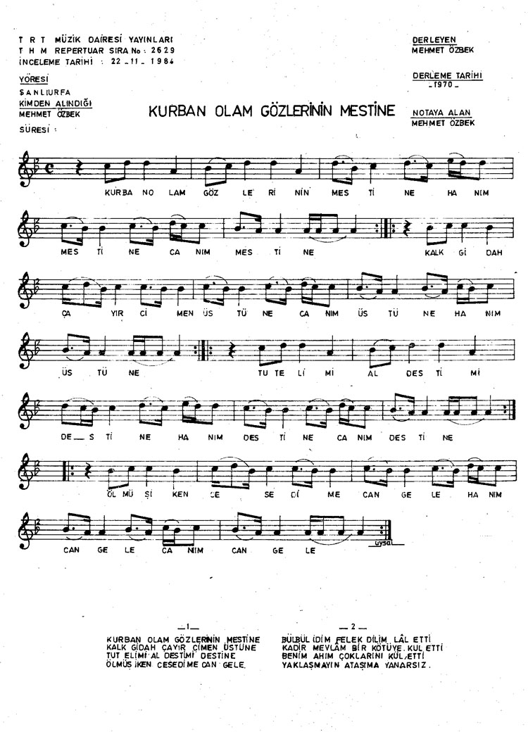 Kurban olam gözlerinin mestine (Rep.No: 2629)