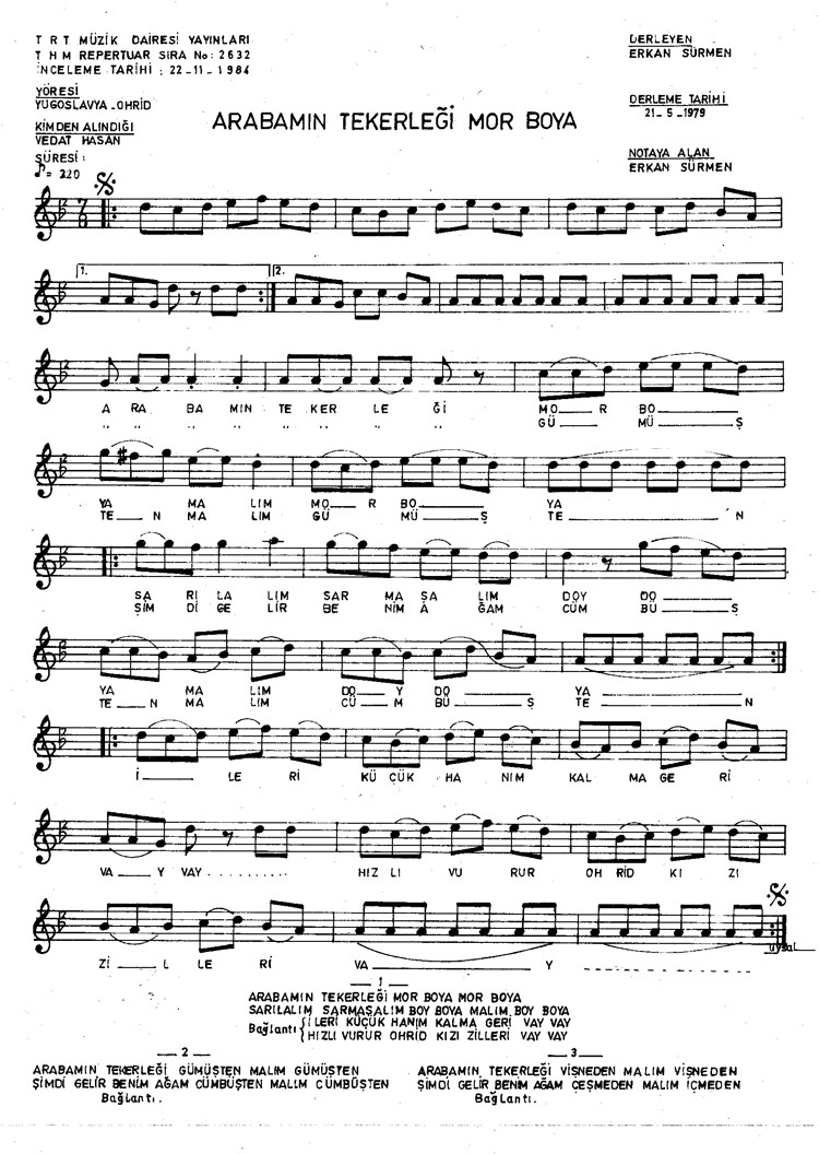 Bu türkünün notasında, sözlerinde veya örnek icrasında bir eksiklik yahut yanlışlık tespit ederseniz, e-mail ile veya WhatsApp hattından bildirim yaparak katkıda bulunabilirsiniz.
