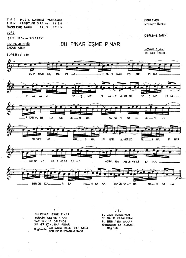 Bu türkünün notasında, sözlerinde veya örnek icrasında bir eksiklik yahut yanlışlık tespit ederseniz, e-mail ile veya WhatsApp hattından bildirim yaparak katkıda bulunabilirsiniz.