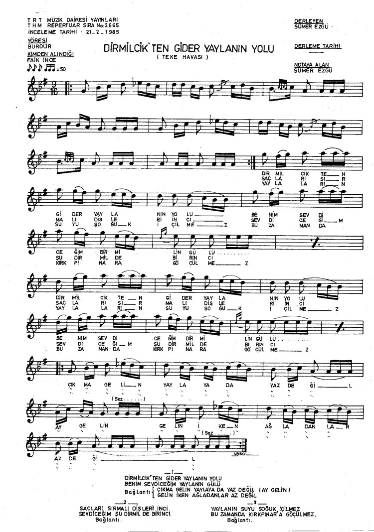 Bu türkünün notasında, sözlerinde veya örnek icrasında bir eksiklik yahut yanlışlık tespit ederseniz, e-mail ile veya WhatsApp hattından bildirim yaparak katkıda bulunabilirsiniz.