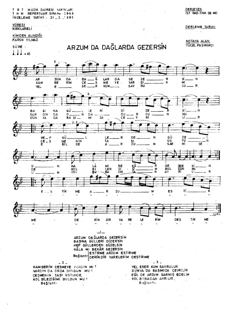 Arzum dağlarda gezersin (Rep.No: 2666)