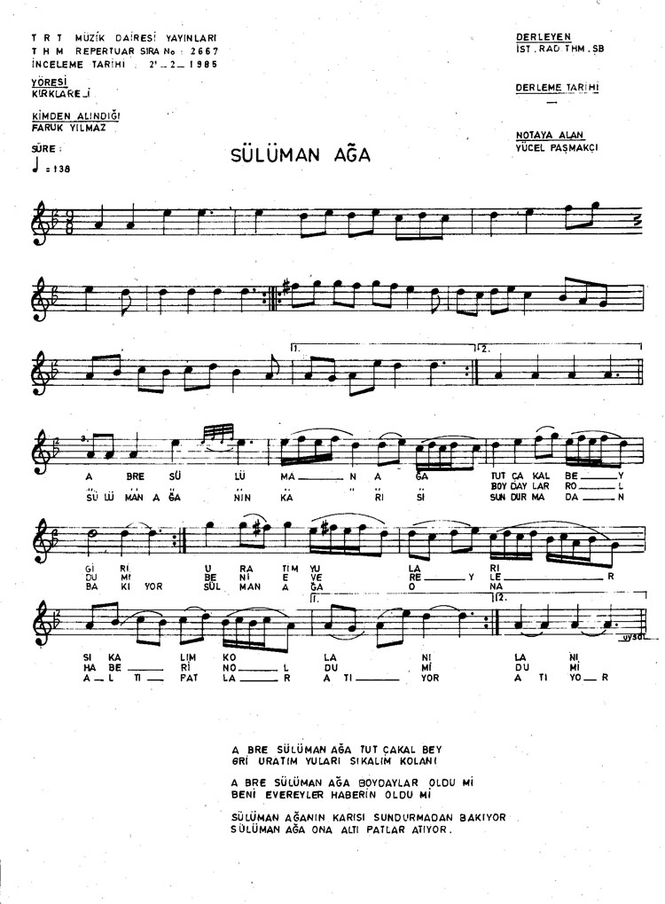 Bu türkünün notasında, sözlerinde veya örnek icrasında bir eksiklik yahut yanlışlık tespit ederseniz, e-mail ile veya WhatsApp hattından bildirim yaparak katkıda bulunabilirsiniz.