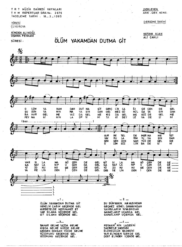 Bu türkünün notasında, sözlerinde veya örnek icrasında bir eksiklik yahut yanlışlık tespit ederseniz, e-mail ile veya WhatsApp hattından bildirim yaparak katkıda bulunabilirsiniz.
