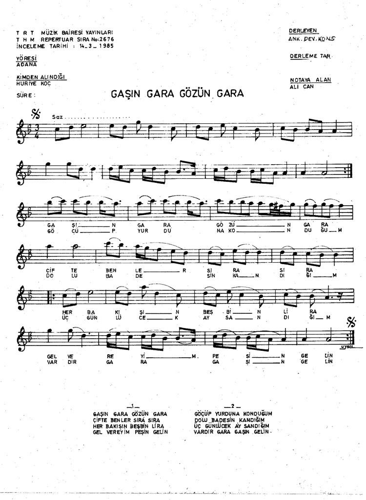 Bu türkünün notasında, sözlerinde veya örnek icrasında bir eksiklik yahut yanlışlık tespit ederseniz, e-mail ile veya WhatsApp hattından bildirim yaparak katkıda bulunabilirsiniz.