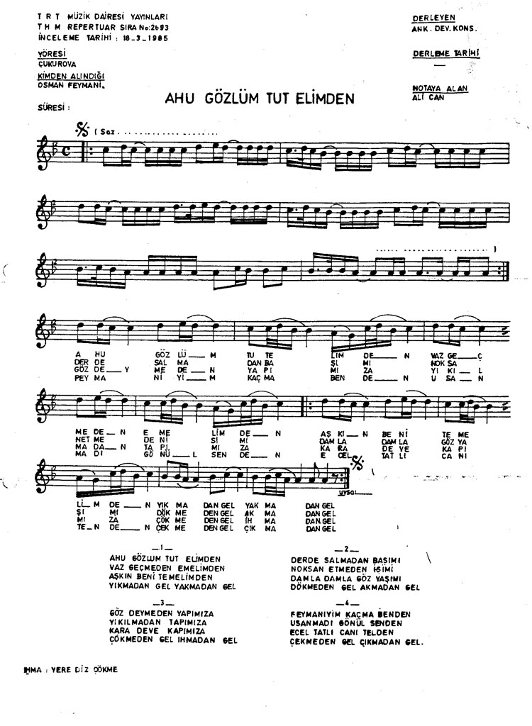 Ahu gözlüm tut elimden (Rep.No: 2693)