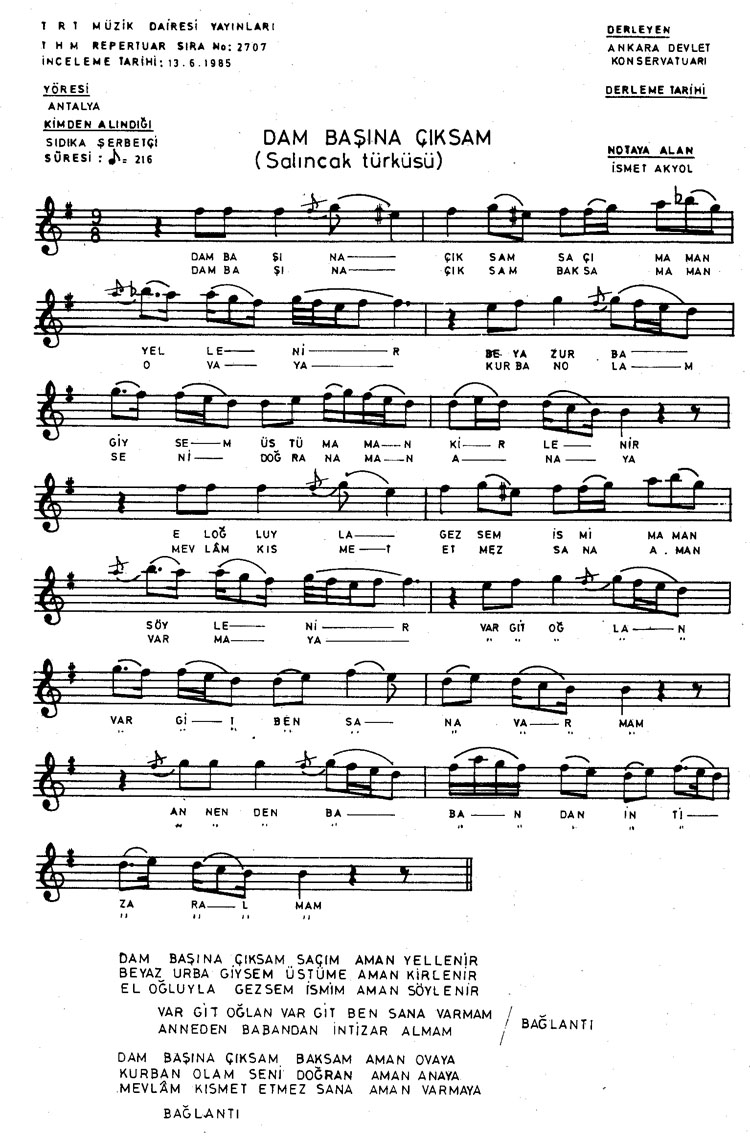 Dam başına çıksam saçım yellenir (Rep.No: 2707)