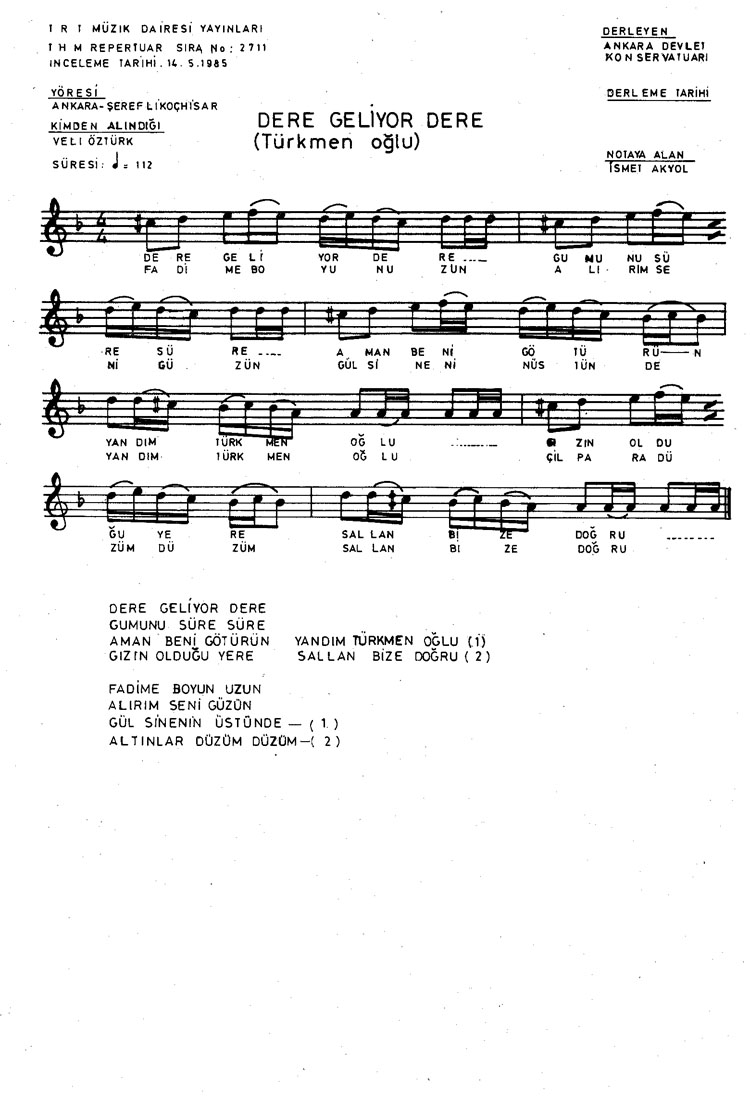 Dere geliyor dere (Arapoğlu) (Rep.No: 2711)