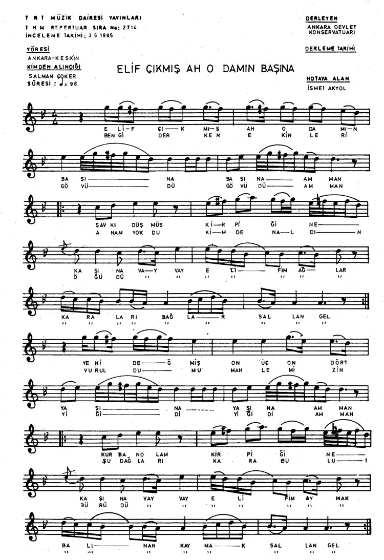Elif çıkmış ah o damın başına (Rep.No: 2714)