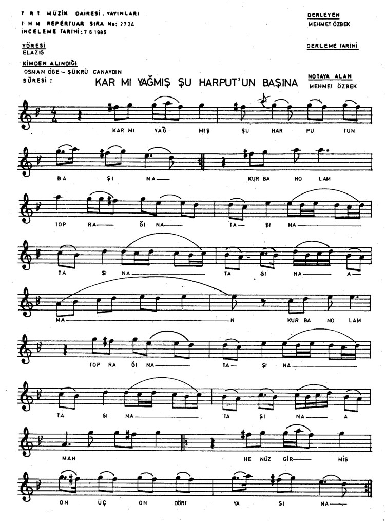 Kar mı yağmış şu harputun başına (Rep.No: 2724)