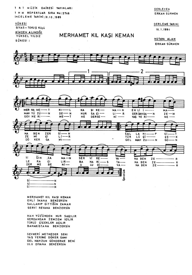 Merhamet kıl kaşı keman (Rep.No: 2746)