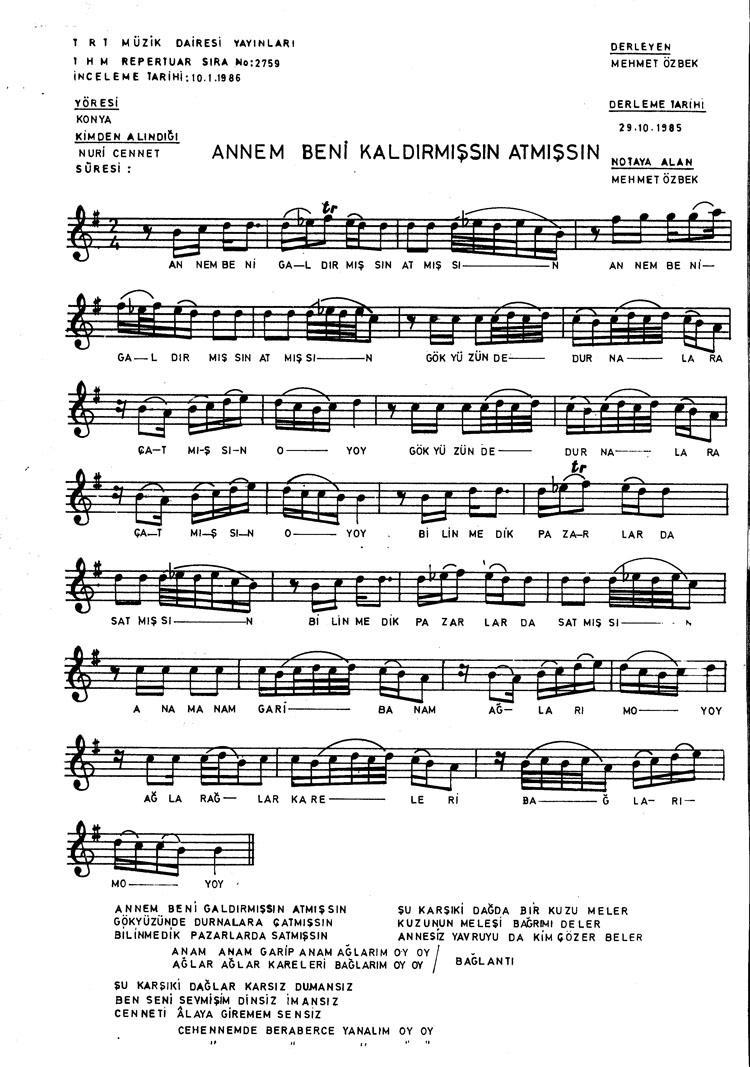 Annem beni kaldırmışsın atmışsın (Rep.No: 2759)