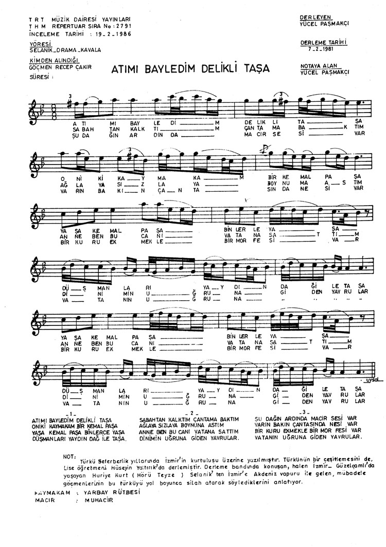 Bu türkünün notasında, sözlerinde veya örnek icrasında bir eksiklik yahut yanlışlık tespit ederseniz, e-mail ile veya WhatsApp hattından bildirim yaparak katkıda bulunabilirsiniz.