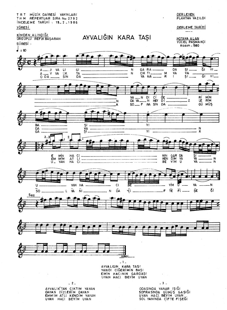 Bu türkünün notasında, sözlerinde veya örnek icrasında bir eksiklik yahut yanlışlık tespit ederseniz, e-mail ile veya WhatsApp hattından bildirim yaparak katkıda bulunabilirsiniz.