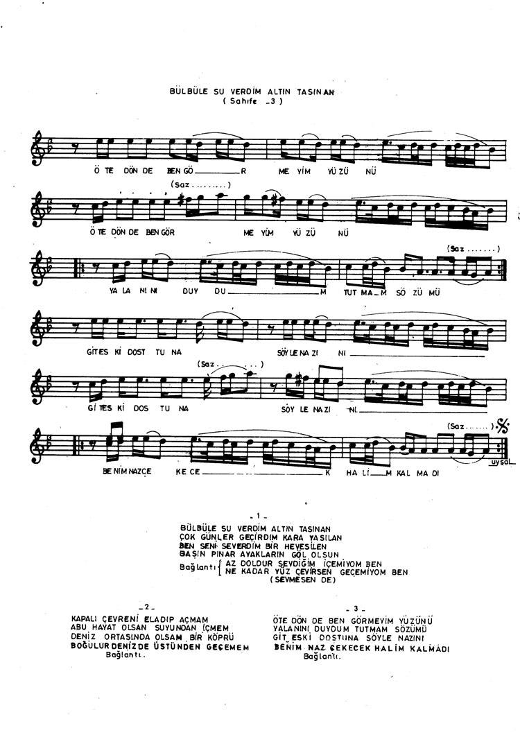 Bülbüle su verdim altın tasınan (Rep.No: 2798)