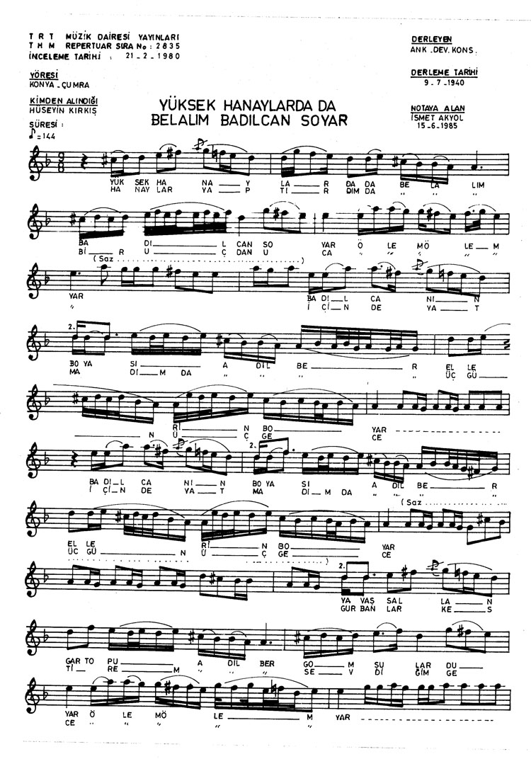 Bu türkünün notasında, sözlerinde veya örnek icrasında bir eksiklik yahut yanlışlık tespit ederseniz, e-mail ile veya WhatsApp hattından bildirim yaparak katkıda bulunabilirsiniz.