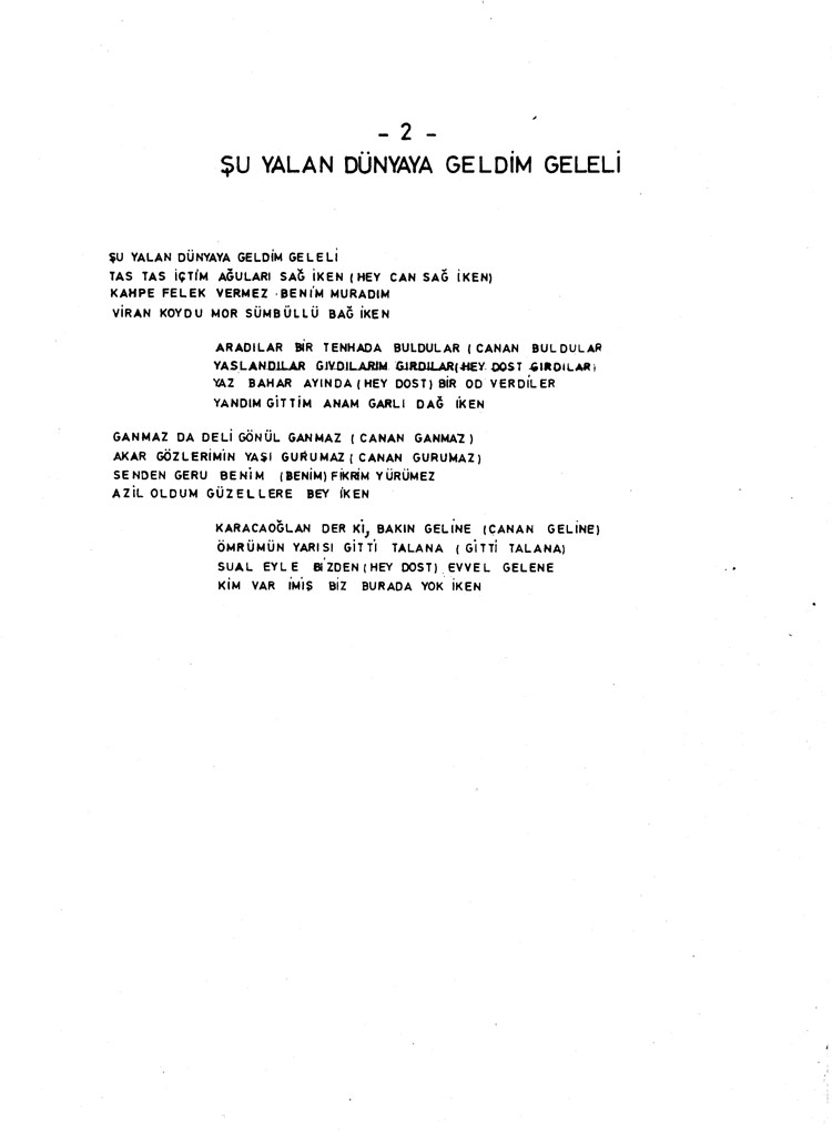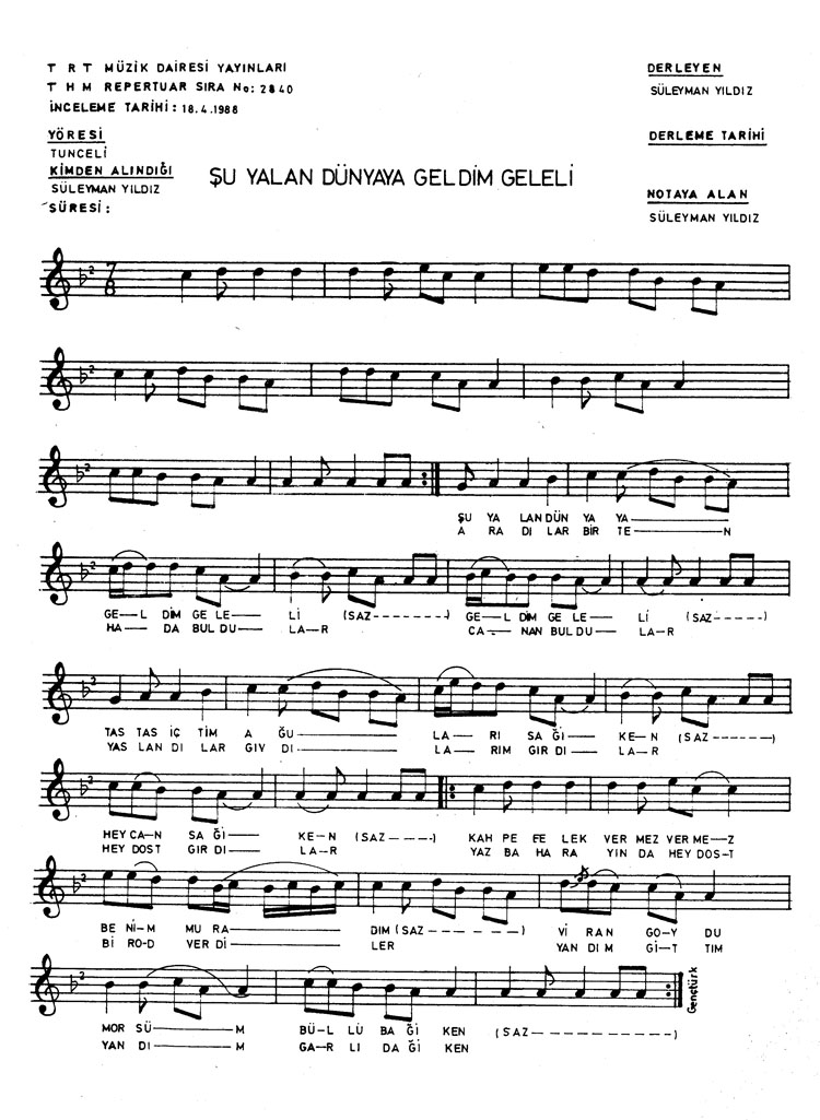 Şu yalan dünyaya geldim geleli (Rep.No: 2840)