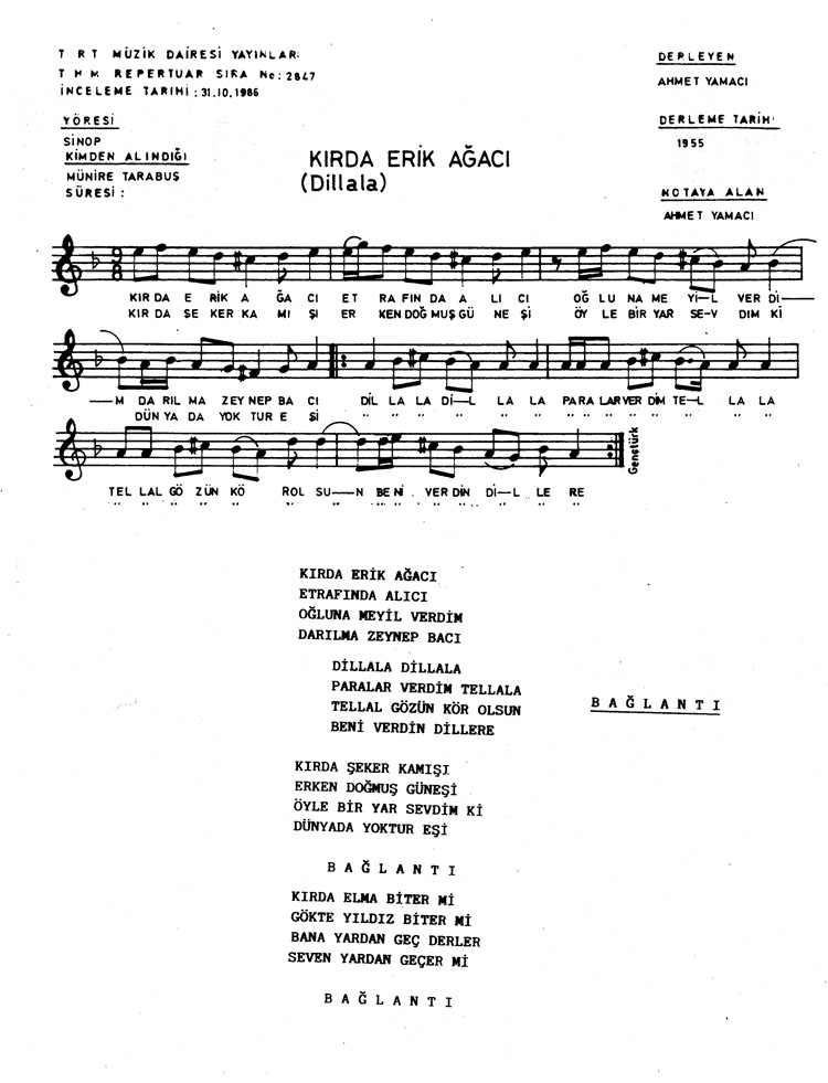 Bu türkünün notasında, sözlerinde veya örnek icrasında bir eksiklik yahut yanlışlık tespit ederseniz, e-mail ile veya WhatsApp hattından bildirim yaparak katkıda bulunabilirsiniz.