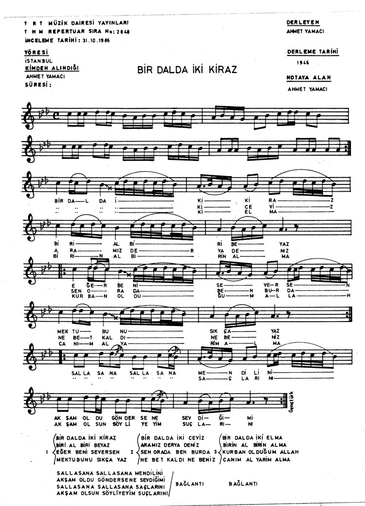 Bu türkünün notasında, sözlerinde veya örnek icrasında bir eksiklik yahut yanlışlık tespit ederseniz, e-mail ile veya WhatsApp hattından bildirim yaparak katkıda bulunabilirsiniz.