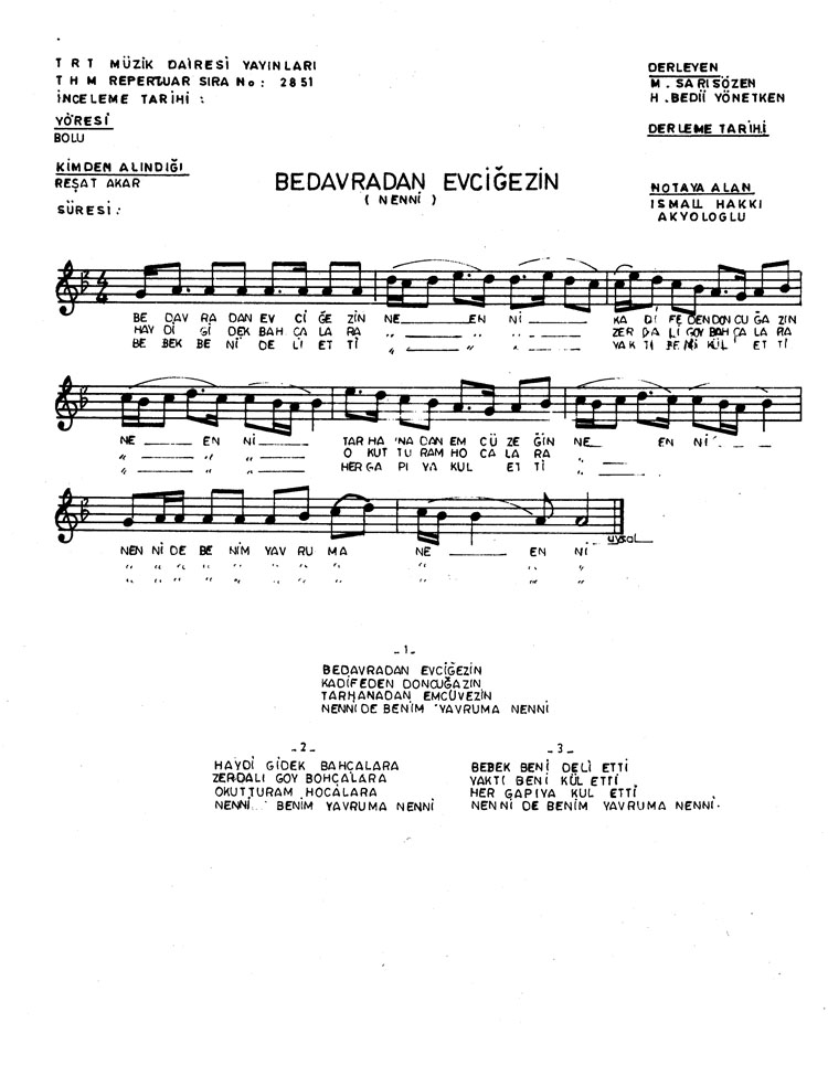 Bu türkünün notasında, sözlerinde veya örnek icrasında bir eksiklik yahut yanlışlık tespit ederseniz, e-mail ile veya WhatsApp hattından bildirim yaparak katkıda bulunabilirsiniz.