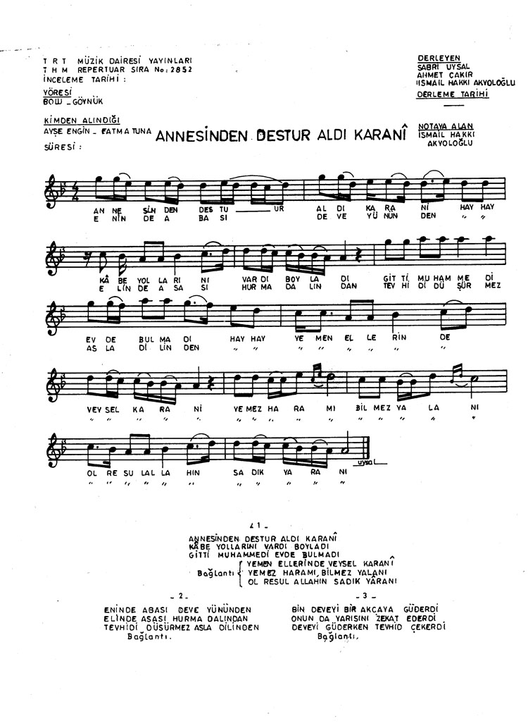 Bu türkünün notasında, sözlerinde veya örnek icrasında bir eksiklik yahut yanlışlık tespit ederseniz, e-mail ile veya WhatsApp hattından bildirim yaparak katkıda bulunabilirsiniz.