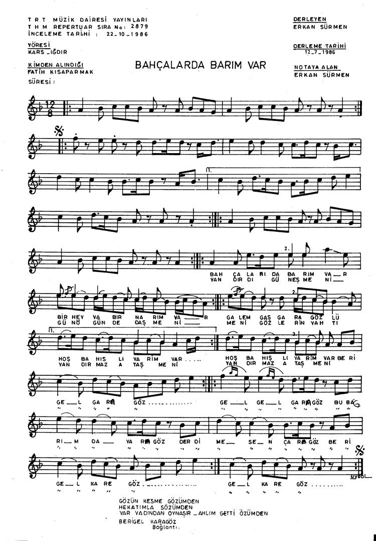 Bu türkünün notasında, sözlerinde veya örnek icrasında bir eksiklik yahut yanlışlık tespit ederseniz, e-mail ile veya WhatsApp hattından bildirim yaparak katkıda bulunabilirsiniz.
