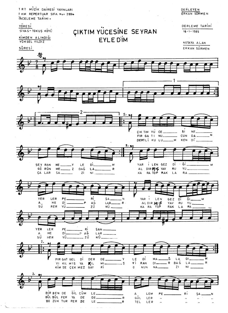 Çıktım yücesine seyran eyledim (Rep.No: 2894)