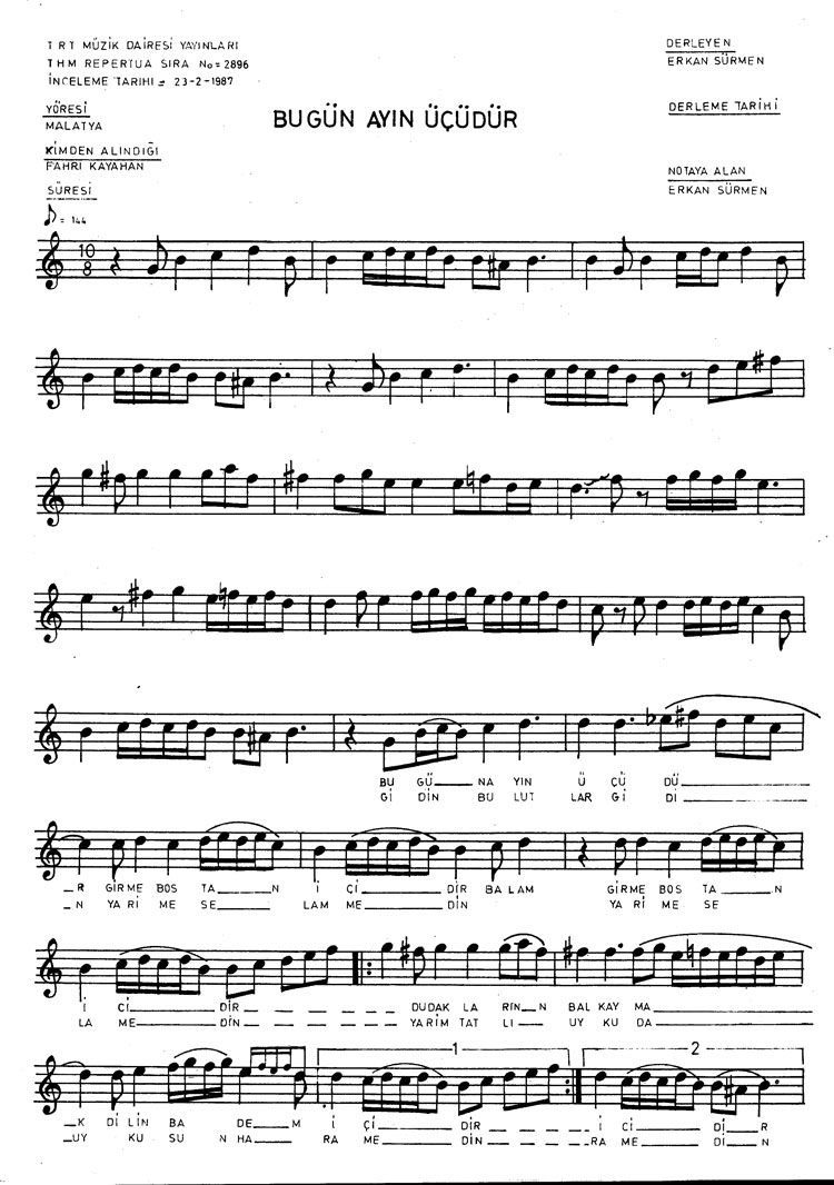 Bu türkünün notasında, sözlerinde veya örnek icrasında bir eksiklik yahut yanlışlık tespit ederseniz, e-mail ile veya WhatsApp hattından bildirim yaparak katkıda bulunabilirsiniz.