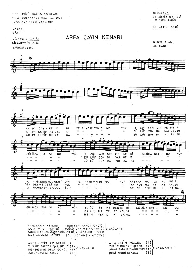 Bu türkünün notasında, sözlerinde veya örnek icrasında bir eksiklik yahut yanlışlık tespit ederseniz, e-mail ile veya WhatsApp hattından bildirim yaparak katkıda bulunabilirsiniz.