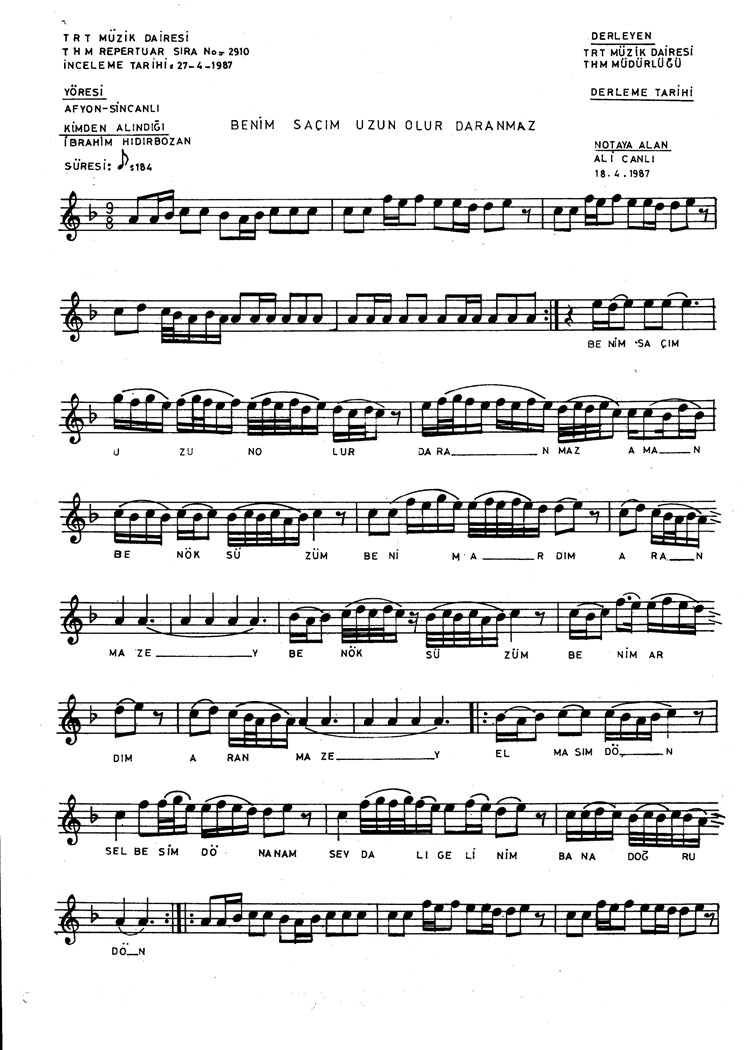 Benim saçım uzun olur daranmaz (Rep.No: 2910)