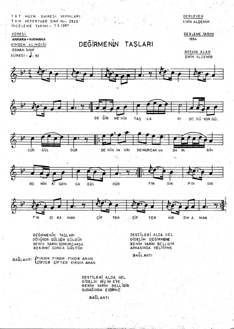 Bu türkünün notasında, sözlerinde veya örnek icrasında bir eksiklik yahut yanlışlık tespit ederseniz, e-mail ile veya WhatsApp hattından bildirim yaparak katkıda bulunabilirsiniz.