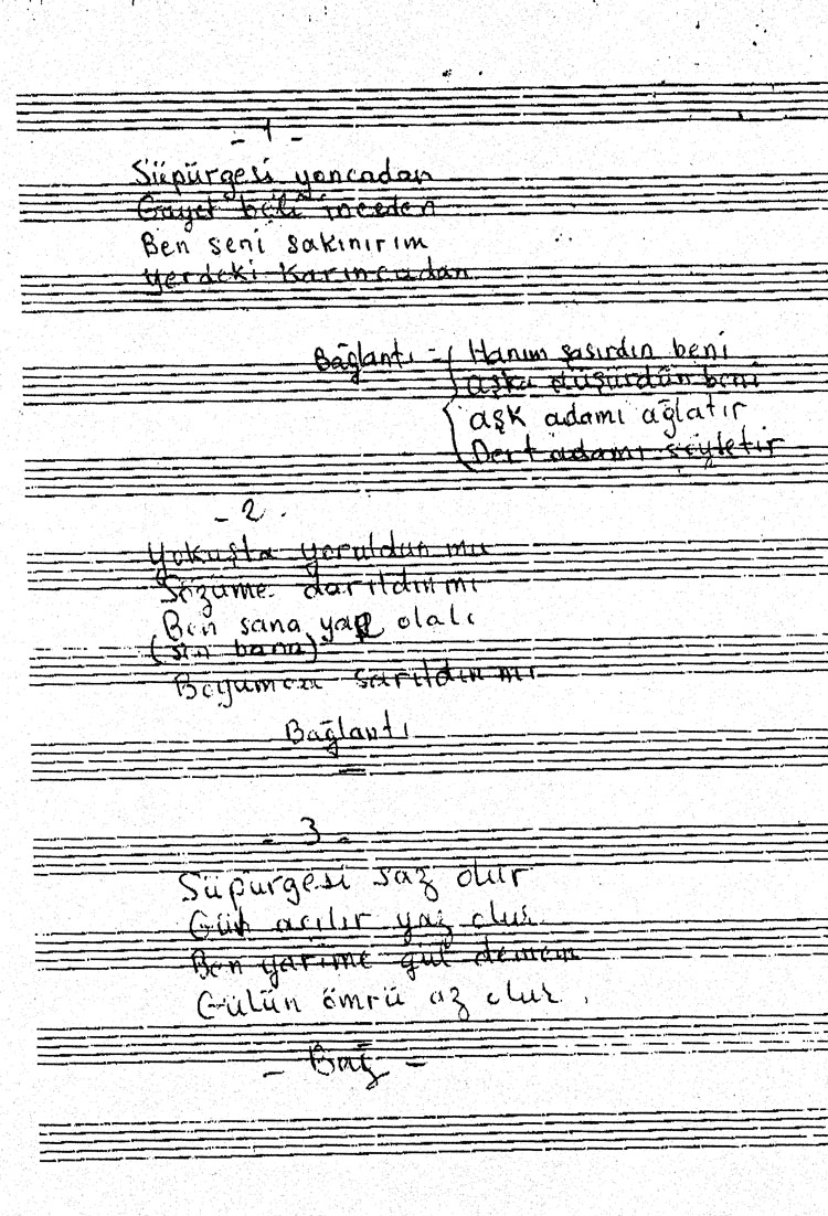 Bu türkünün notasında, sözlerinde veya örnek icrasında bir eksiklik yahut yanlışlık tespit ederseniz, e-mail ile veya WhatsApp hattından bildirim yaparak katkıda bulunabilirsiniz.