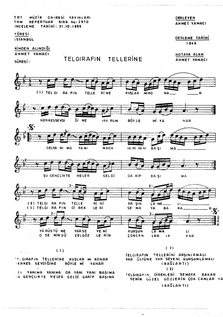 Telgrafın tellerine kuşlar mı konar (Rep.No: 2970)