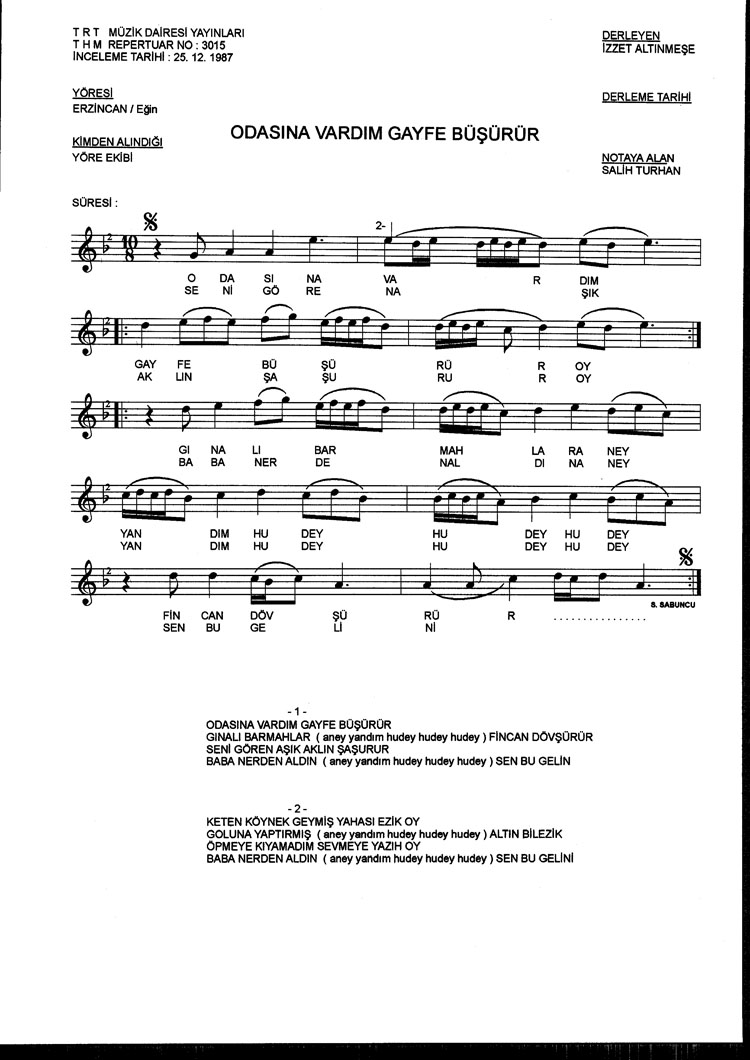 Odasına vardım gayfe büşürür (Rep.No: 3015)