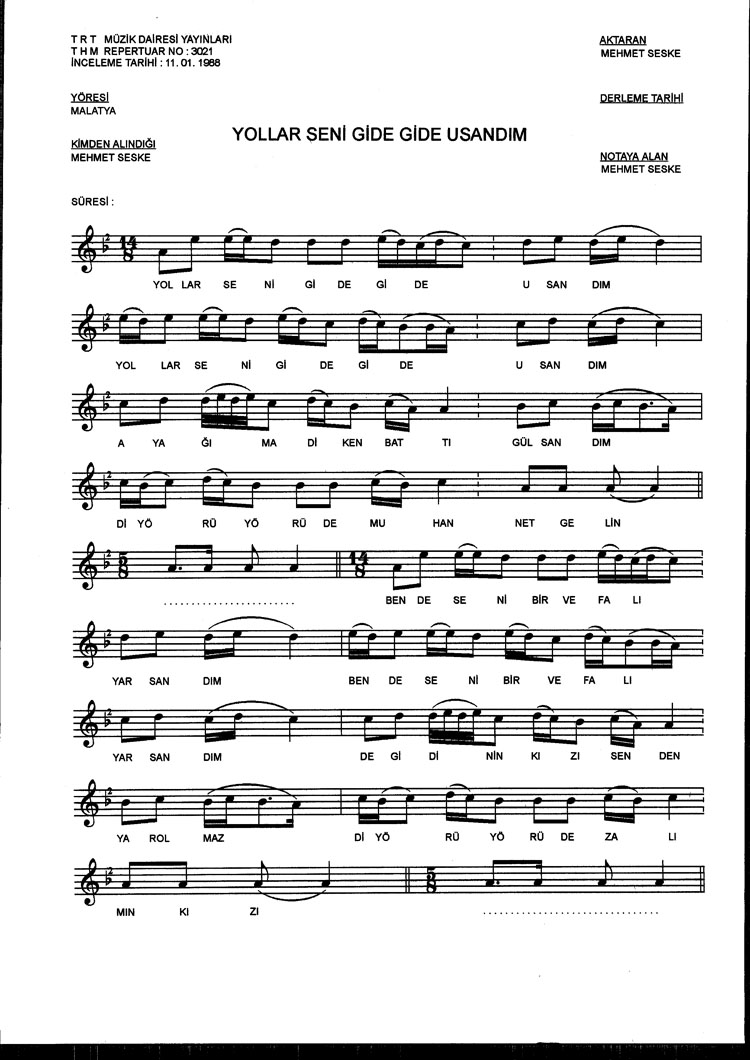 Yollar seni gide gide usandım (Rep.No: 3021)