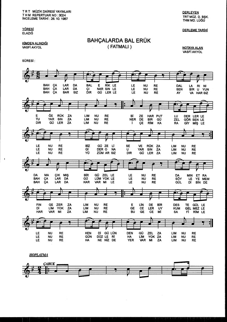 Bu türkünün notasında, sözlerinde veya örnek icrasında bir eksiklik yahut yanlışlık tespit ederseniz, e-mail ile veya WhatsApp hattından bildirim yaparak katkıda bulunabilirsiniz.
