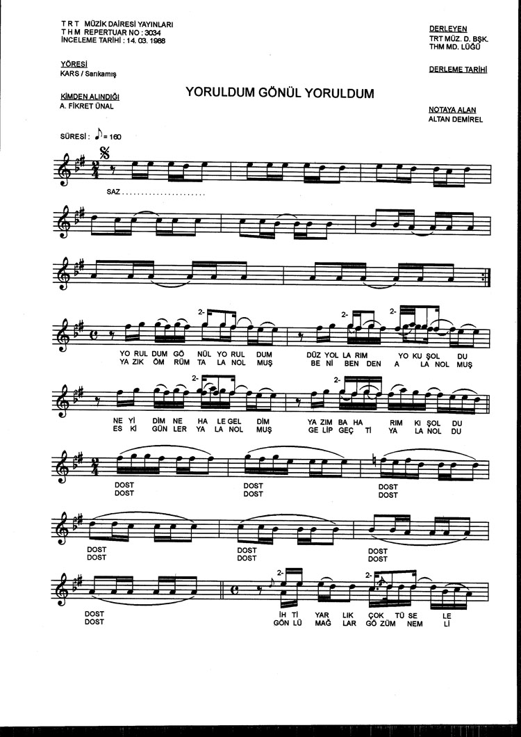 Yoruldum gönül yoruldum (Rep.No: 3034)