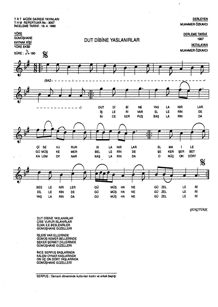 Bu türkünün notasında, sözlerinde veya örnek icrasında bir eksiklik yahut yanlışlık tespit ederseniz, e-mail ile veya WhatsApp hattından bildirim yaparak katkıda bulunabilirsiniz.