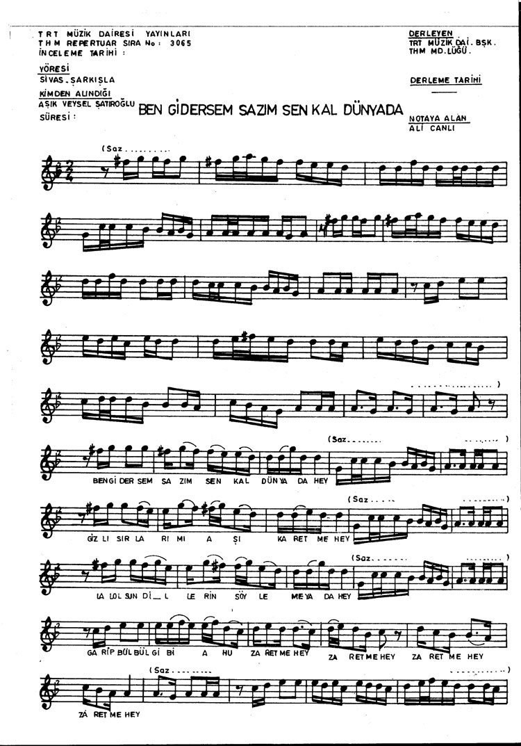 Ben gidersem sazım sen kal dünyada (Rep.No: 3065)