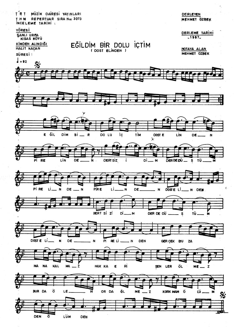 Eğildim bir dolu içtim (Rep.No: 3073)