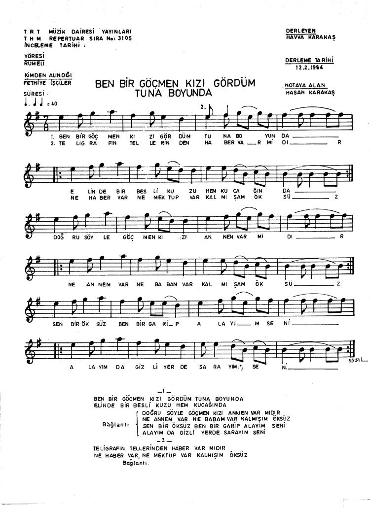 Ben bir göçmen kızı gördüm (Rep.No: 3105)