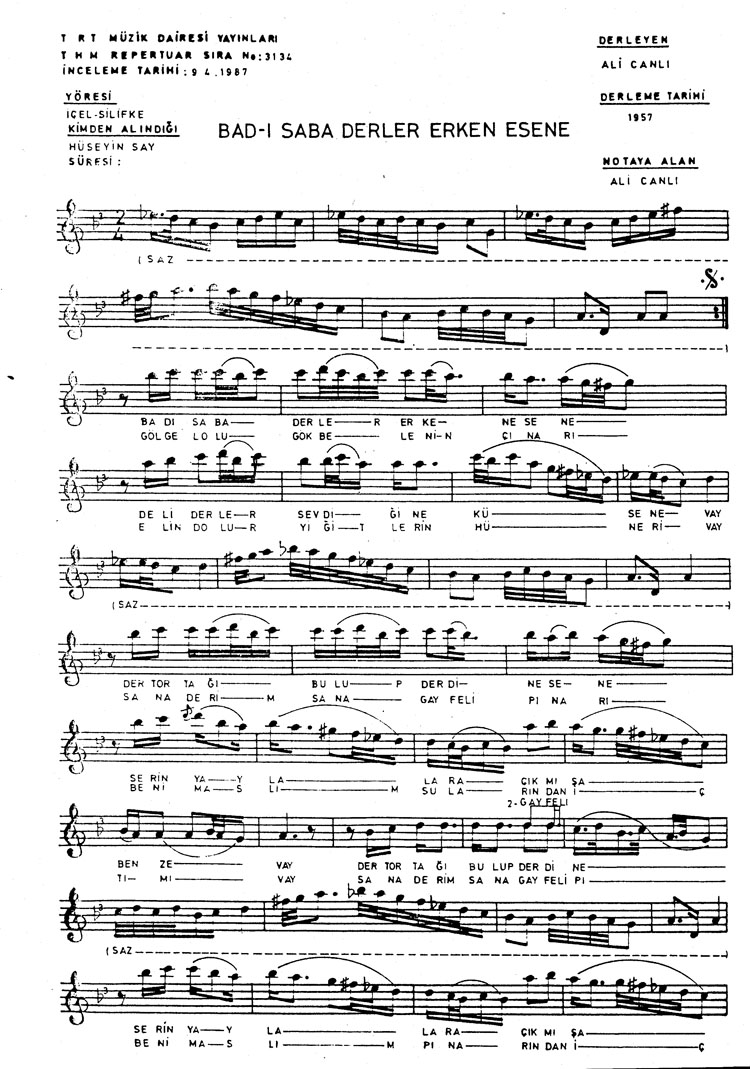 Bad-ı saba derler erken esene (Rep.No: 3134)