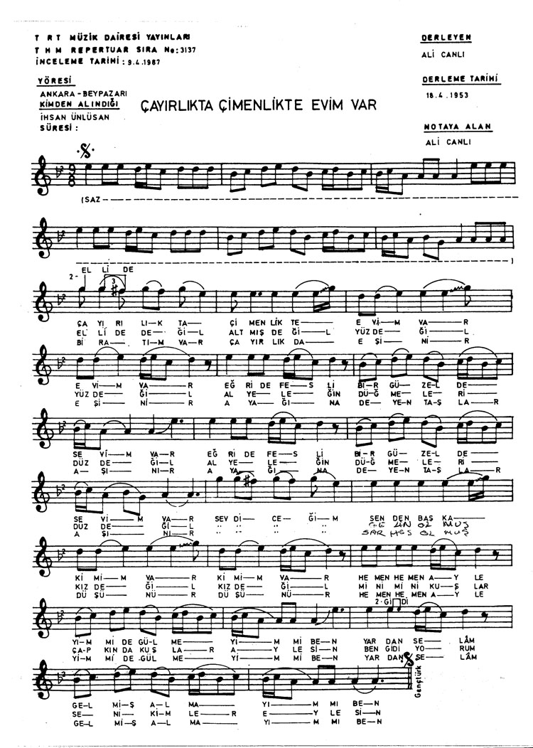 Çayırlıkta çimenlikte evim var (Rep.No: 3137)