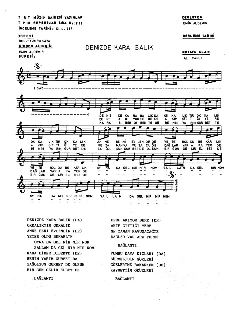 Bu türkünün notasında, sözlerinde veya örnek icrasında bir eksiklik yahut yanlışlık tespit ederseniz, e-mail ile veya WhatsApp hattından bildirim yaparak katkıda bulunabilirsiniz.