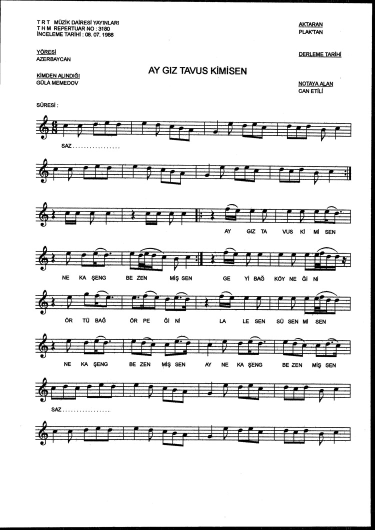 Ay gız tavus kimisen (Rep.No: 3180)