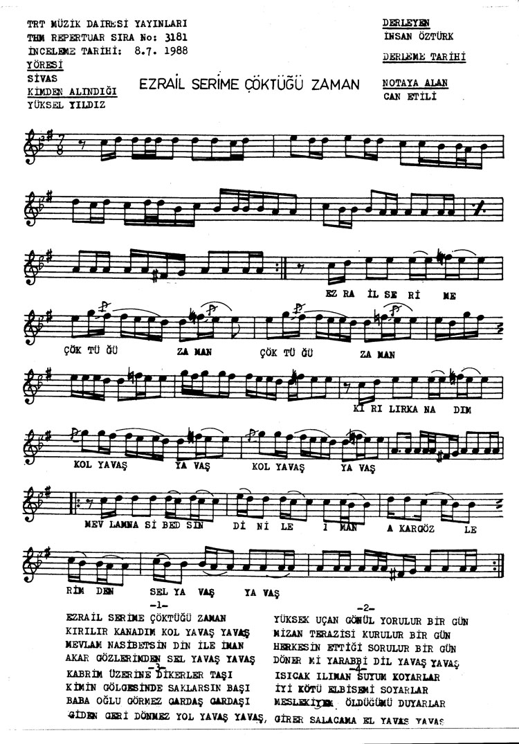 Bu türkünün notasında, sözlerinde veya örnek icrasında bir eksiklik yahut yanlışlık tespit ederseniz, e-mail ile veya WhatsApp hattından bildirim yaparak katkıda bulunabilirsiniz.