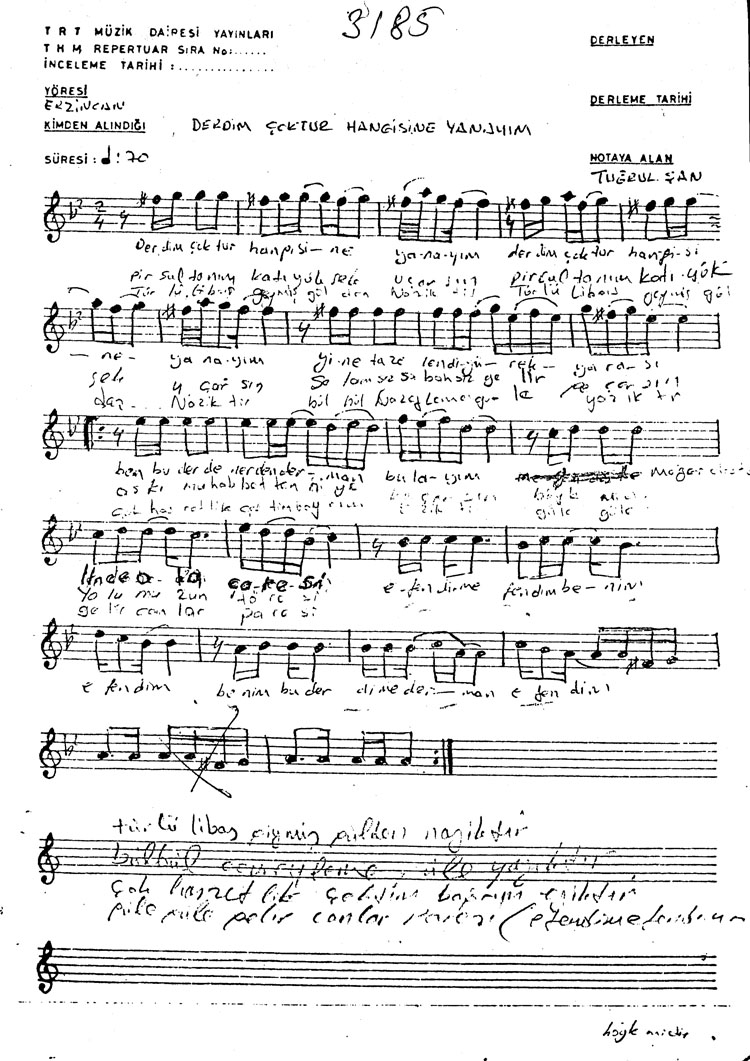 Derdim çoktur hangisine yanayım (Rep.No: 3185)