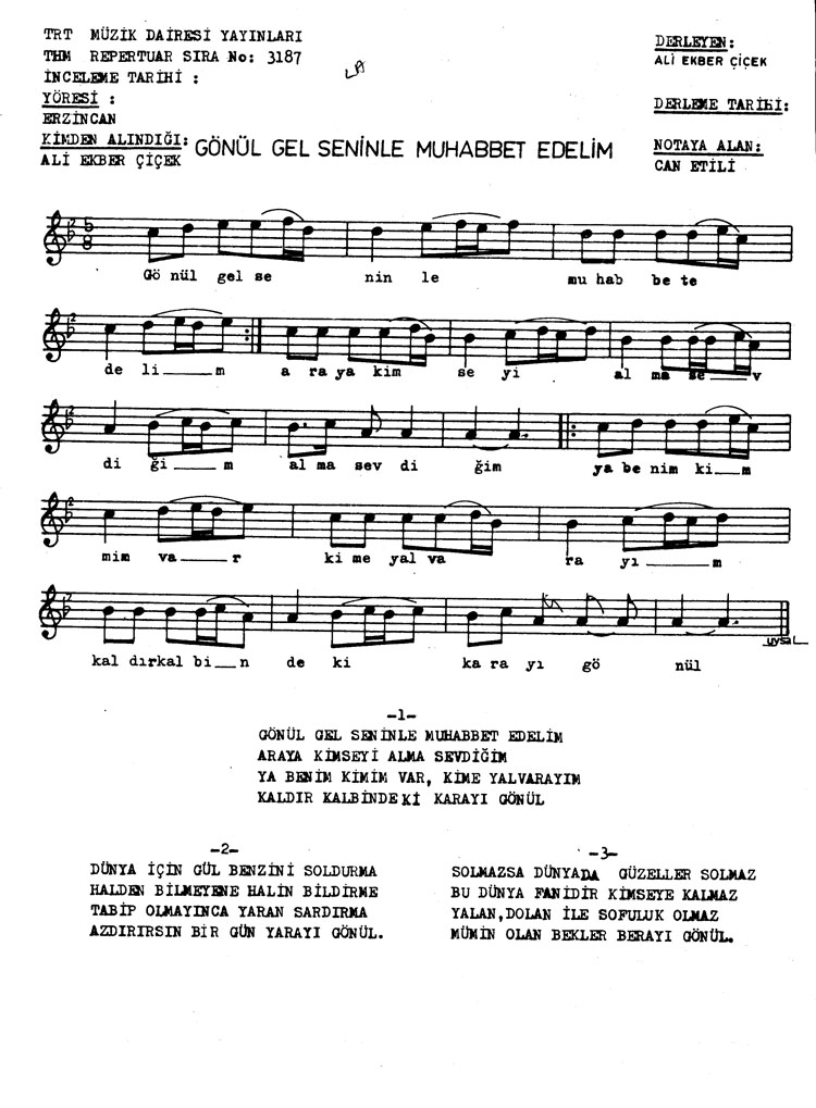 Gönül gel seninle muhabbet edelim (Rep.No: 3187)