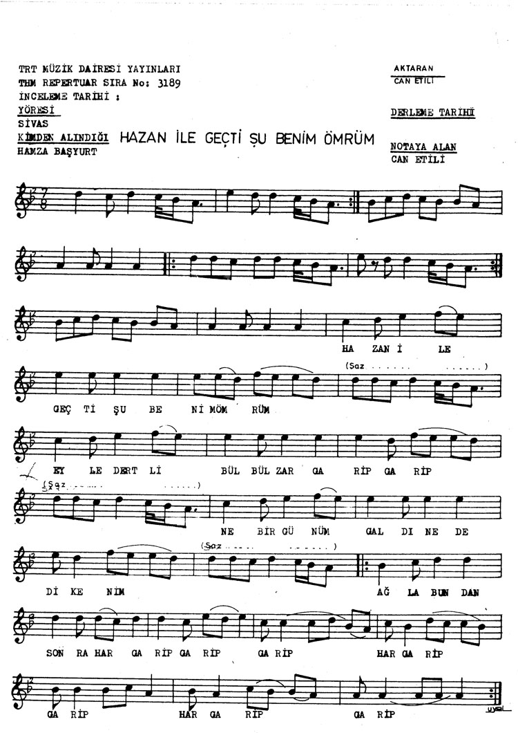 Hazan ile geçti şu benim ömrüm (Rep.No: 3189)